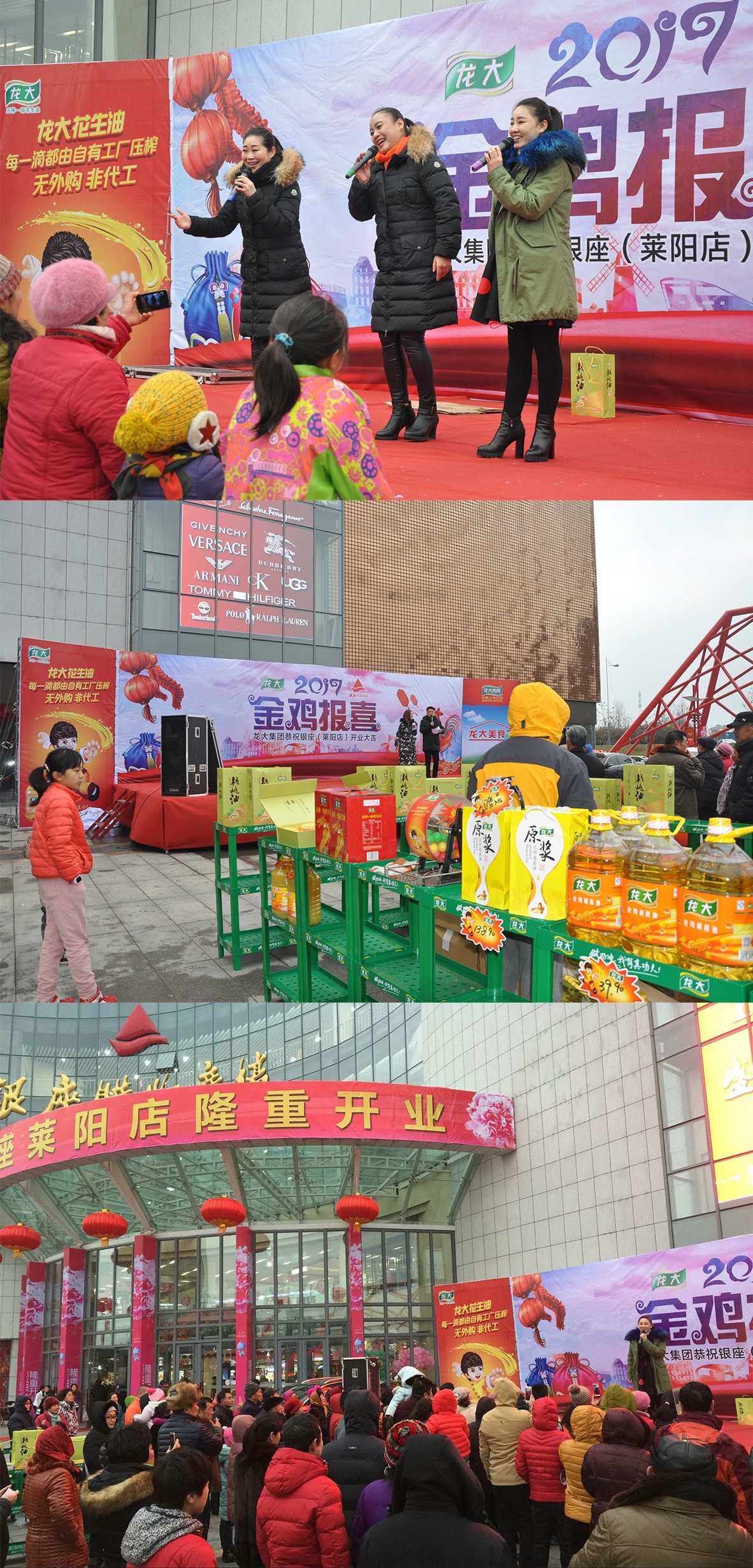 1月7日—9日,銀座萊陽店門前廣場喜氣洋洋。龍大集團組織旗下植物油、肉食品兩大內貿產品進行為期3天的路演,為銀座萊陽店開業助力。