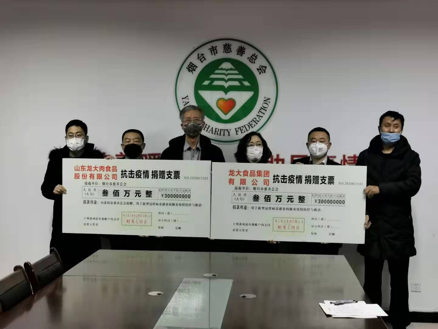 龍大食品集團有限公司和山東龍大肉食品股份有限公司 共捐贈600萬元助力新型冠狀病毒感染的肺炎疫情防控