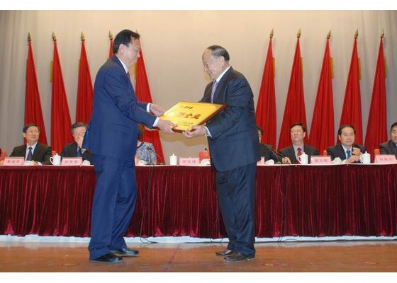 2月24日,萊陽市委市政府在工人文化宮召開總結(jié)表彰和新年度動員大會。會上,表彰了全市先進(jìn)企業(yè)和先進(jìn)單位。圖為萊陽市委書記賀業(yè)增(左)為龍大集團(tuán)頒發(fā)“功勛企業(yè)”獎牌。